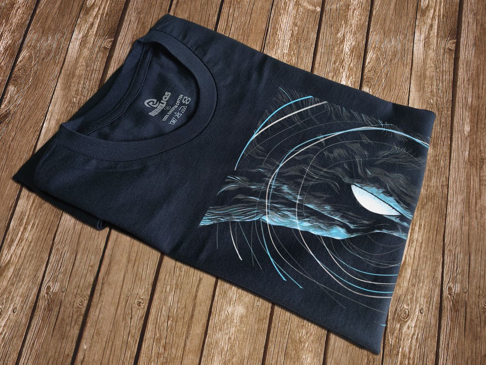 Nadruk przedstawia hipnotyzujący wizerunek Franka – mrocznego królika z filmu Donnie Darko. Nie jest to zwyczajny zwierzęcy motyw, a psychodeliczna, nieco rozmyta wizja, oddająca oniryczny klimat filmu. Jego pusta, niemal mechaniczna maska patrzy prosto na Ciebie, jakby znała koniec świata, zanim ten się zacznie.