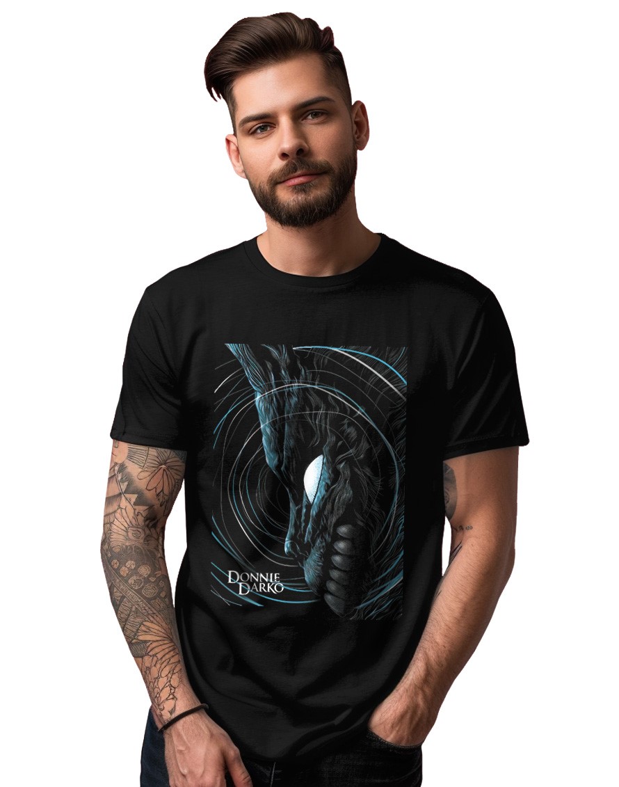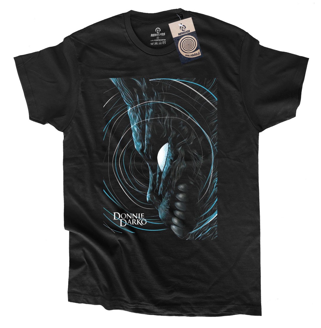 🌀 NAWIĄZANIE DLA ZNAWCÓW: Ten projekt to ukłon w stronę świadomego widza. Rozpoznają go tylko ci, którzy zatopili się w zakamarkach dziwnego świata Donniego Darko. To koszulka-bilet do elitarnego klubu fanów.